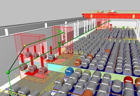 LTWMS integrates fully automatic cranes. It provides routing functions to circumnavigate obstacles, avoid collision and records crane data for maintenance purposes.